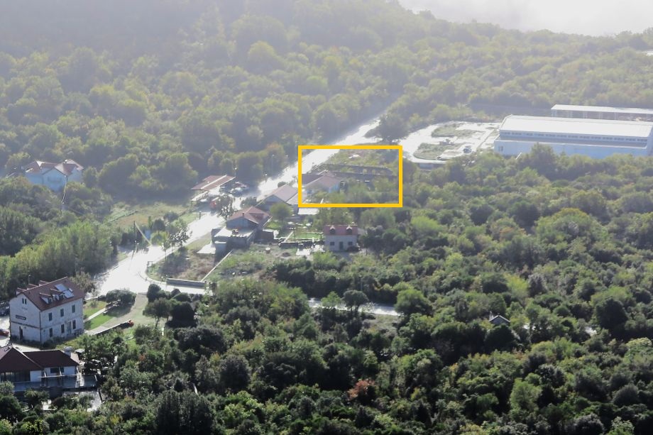 Ruševina zadruge na Stanici u Ravnom (u žutom pravokutniku)